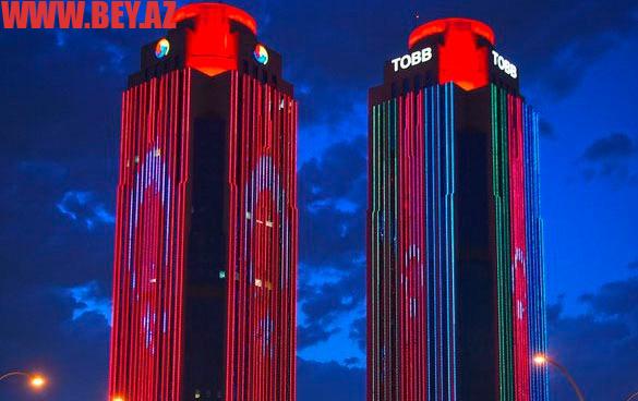 Ankarada əkiz qüllələr binası Azərbaycan bayrağına büründü