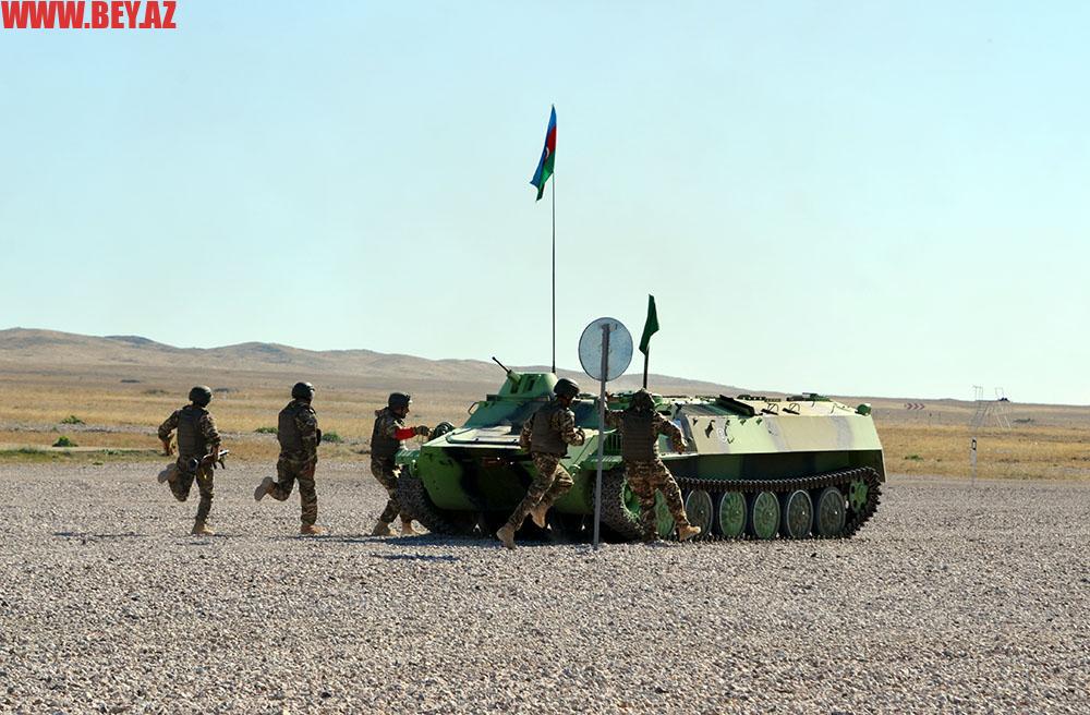 Hərbi qulluqçularımız növbəli şəkildə maneələr zolağını və minalanmış ərazini keçib, pulemyot, minaatan, qumbaraatan və avtomatlardan təyin olunan hədəfləri sərrast atəşlə məhv ediblər.