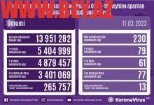 Son sutka ərzində yeni yoluxma hallarının müəyyənləşdirilməsi ilə əlaqədar 1 833, bu günə qədər isə ümumilikdə 6 909 386 test icra olunub.