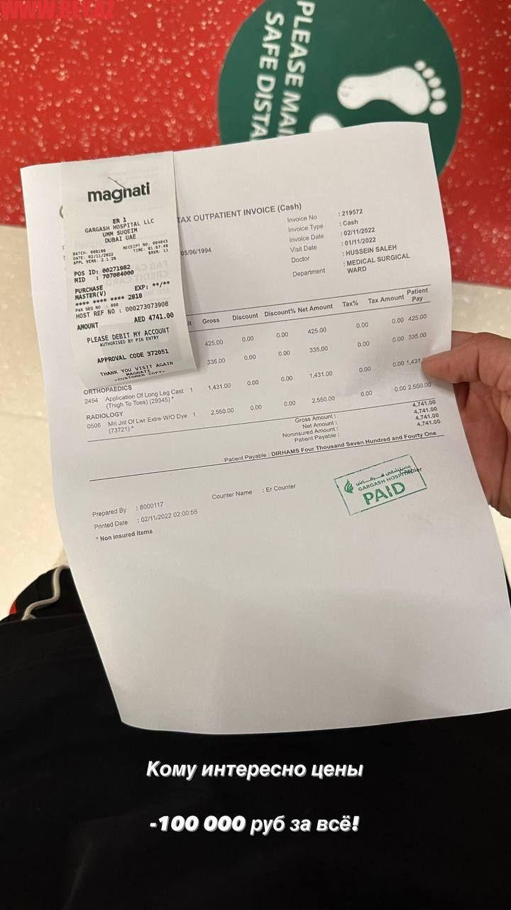 Həsənov klinikada göstərilən tibbi yardımın həddindən baha olduğundan da şikayətlənib. O, sosial şəbəkə hesabında sonda klinikaya ödəməli olduğu çekin fotosunu yayımlayıb. Məbləğ isə 4,741 dollar olduğunu yazıb.