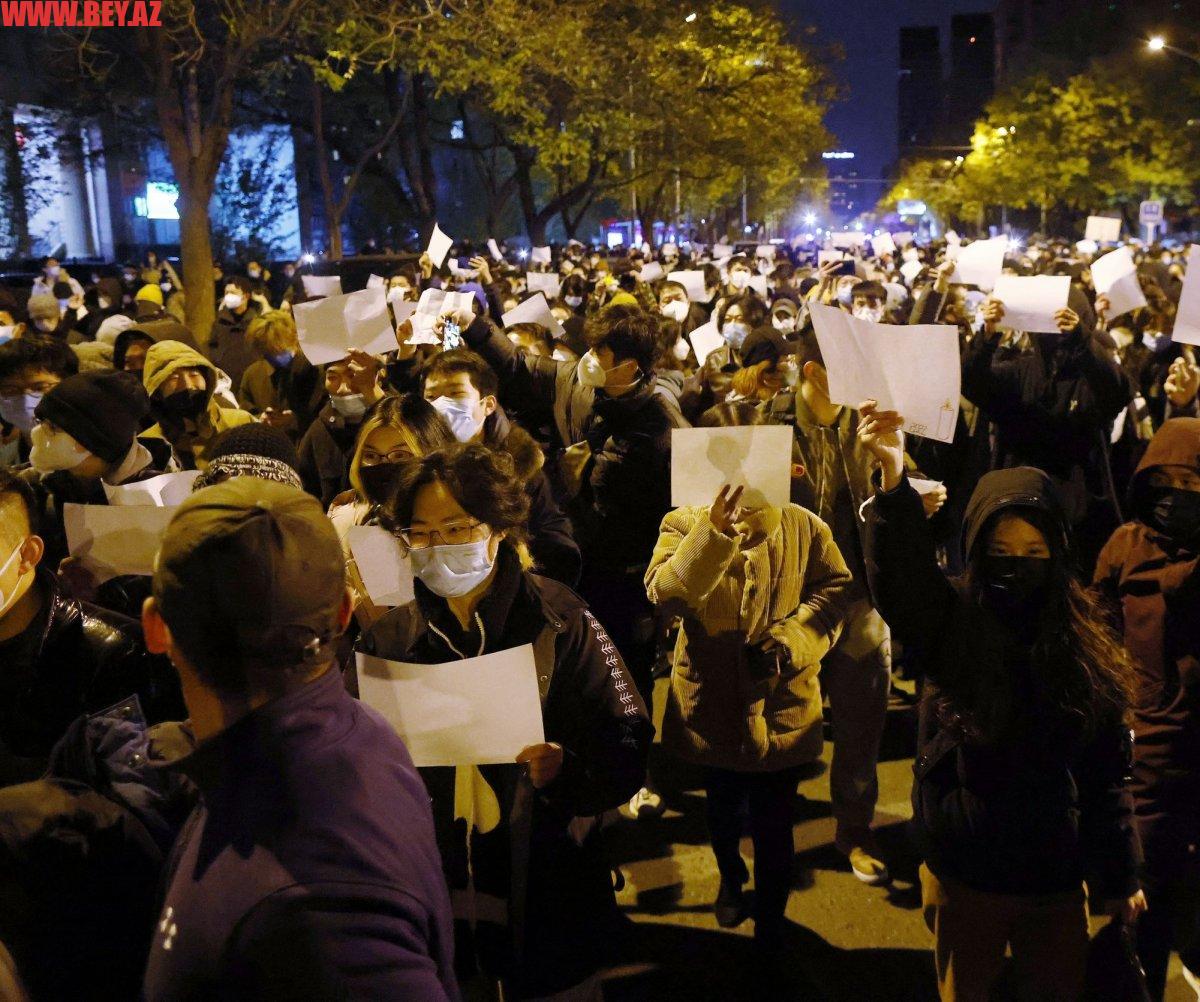 Çində pandemiya ilə bağlı sərt tədbirlərin tətbiqinə qarşı etiraz aksiyaları təşkil edən nümayişçilərin əllərində ağ kağız daşıması diqqət çəkib.