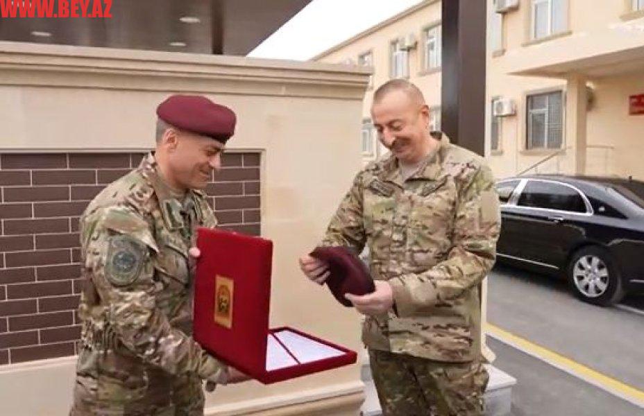 bey.az xəbər verir ki, Xüsusi Təyinatlı Qüvvələrin komandanı, general-leytenant Hikmət Mirzəyev Ali Baş Komandana xüsusi təyinatlıların xatirə beretini təqdim edib.
