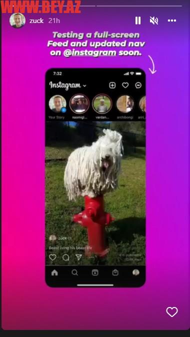 “Meta”nın rəhbəri Mark Zukerberq instaqramda yeni tam ekran lentini sınaqdan keçirir.
