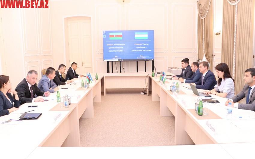 Daha sonra əməkdaşlıq proqramı çərçivəsində “Prokurorun işlərə məhkəmələrdə baxılmasında iştirakı” mövzusunda seminar keçirilib. Tədbirdə Azərbaycan və Özbəkistan prokurorluq əməkdaşları mövzu ətrafında təqdimatlarla çıxış ediblər.