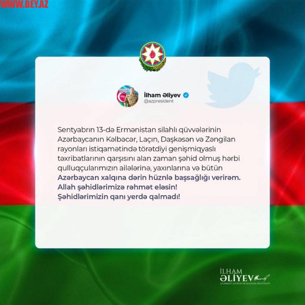 Prezident İlham Əliyev Azərbaycan xalqına başsağlığı verib.
