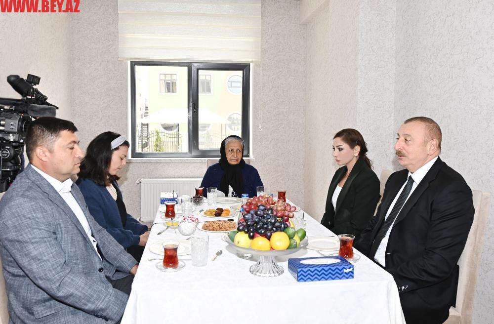 Sonra dövlətimizin başçısı və birinci xanım Vətən müharibəsində şəxsi igidliyinə və şücaətinə görə “Füzulinin azad olunmasına görə”, “Vətən uğrunda” və “Cəsur döyüşçü” medalları ilə təltif edilmiş şəhid Mahir Məmmədovun ailəsinin qonağı olublar.