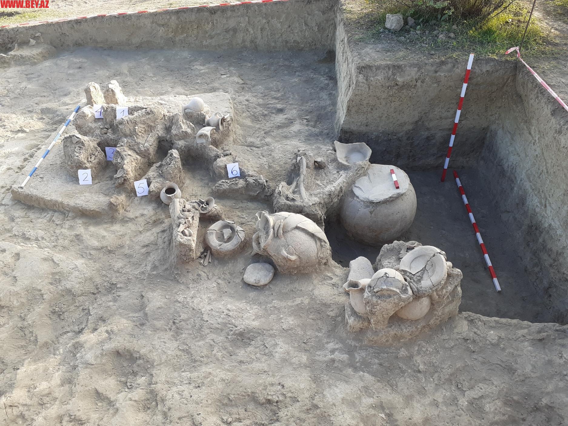AMEA-dan bey.az-a verilən məlumata görə, qəbirlərdən sağ tərəfi üstdə, qismən bükülü vəziyyətdə dəfn olunmuş insanlara aid skeletlər və maddi-mədəniyyət qalıqları üzə çıxarılıb. Maraqlı tapıntılar içərisində həm əvvəlki ildə, həm də cari mövsümdə tapılmış kiçik qadın bütləri də var.