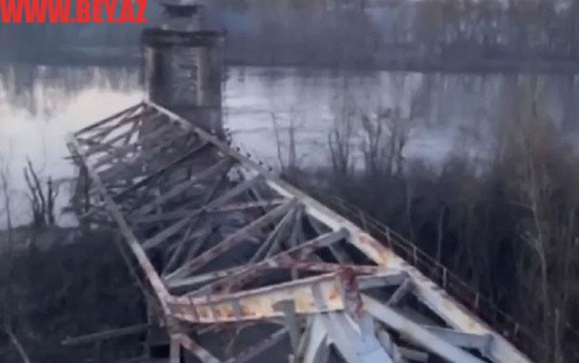 Sosial şəbəkədə dağılmış körpünün videosu yayılıb. Zərbə nəticəsində körpünün aşırımlarından birinin uçduğu görünür.